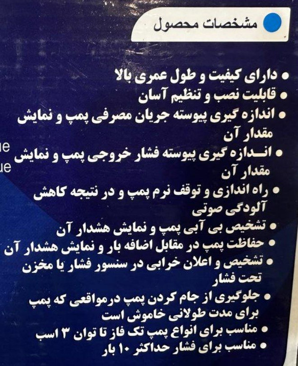 ✓ برای پمپ های تکفاز تا حداکثر توان (2 اسب بخار)
